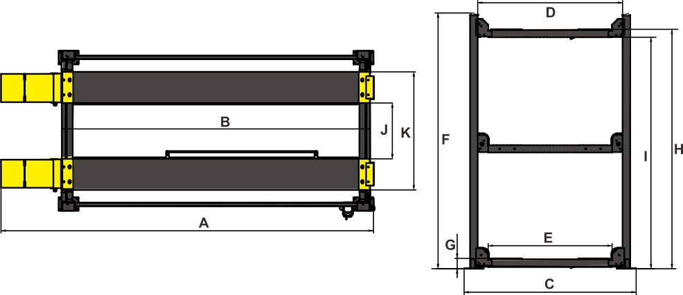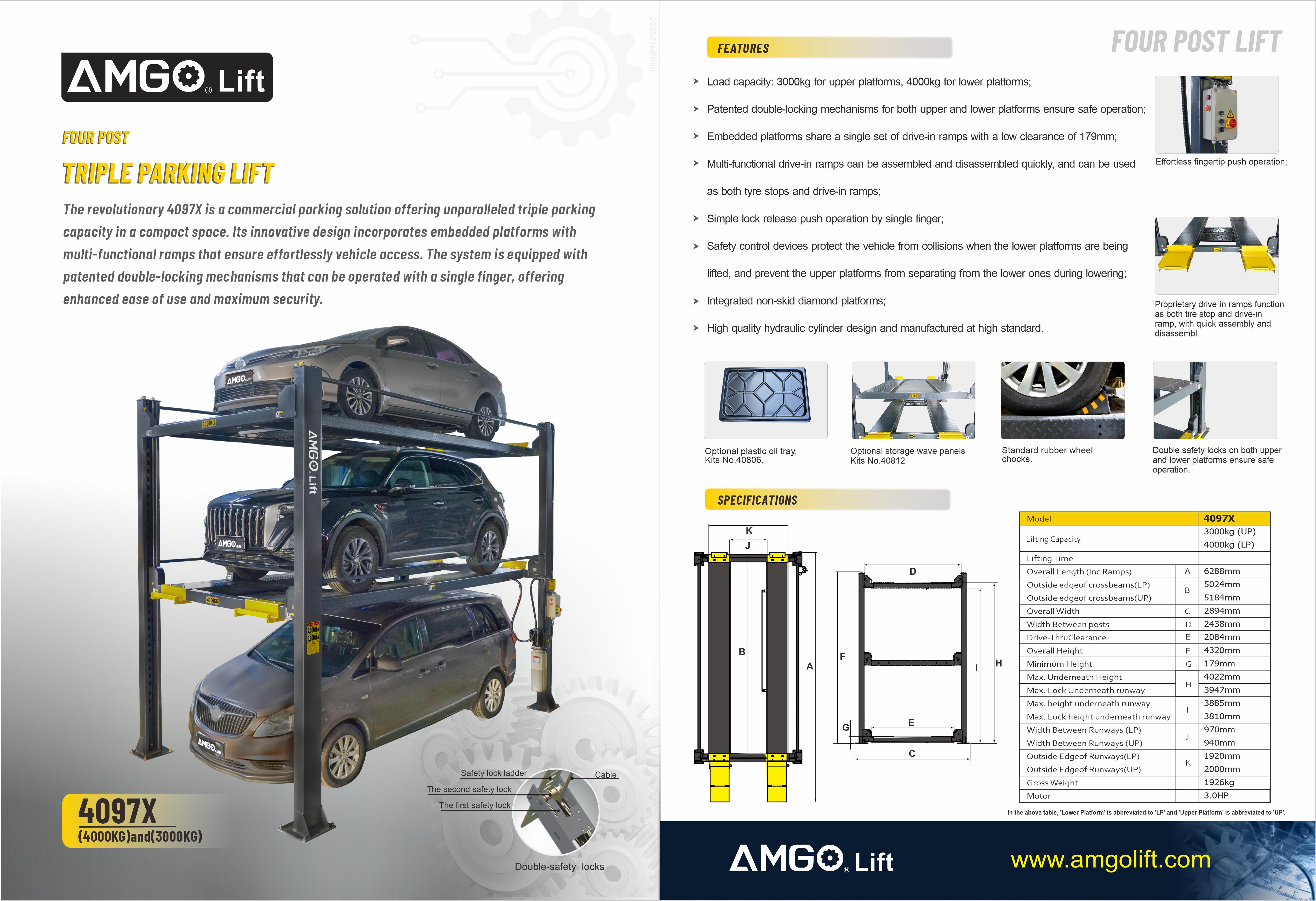 - Load capacity: 3000kg for upper platforms, 4000kg for lower platforms;