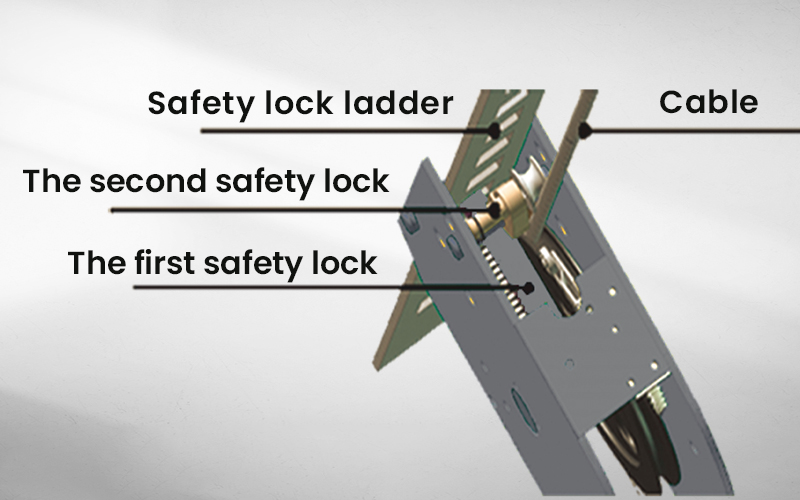 • Dual safety devices mechanisms: both primary safety locks and cable-slack protection mechanism;