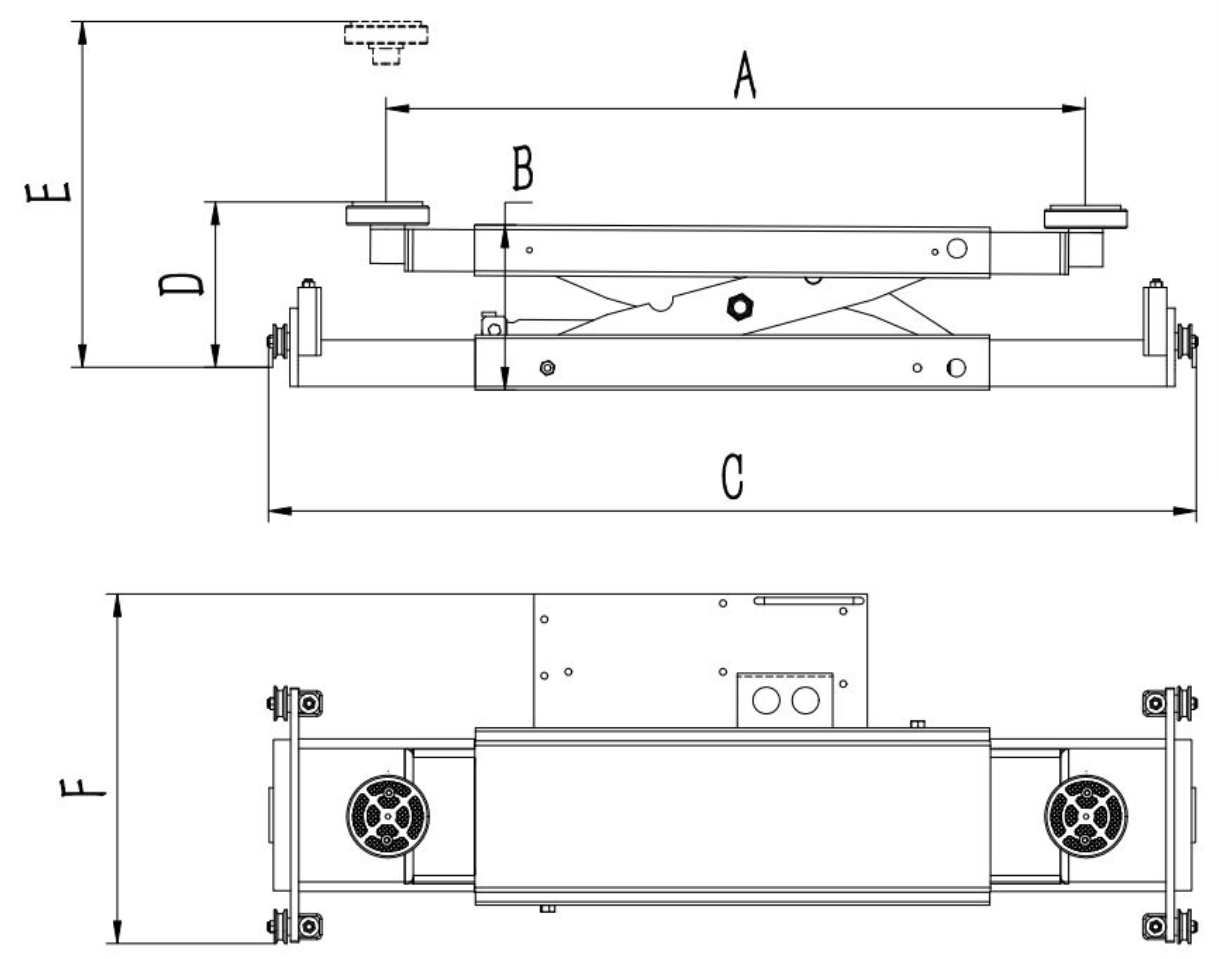- Extendable lower sliding Assy. fitting for width between runways from 848mm to 1,330mm.