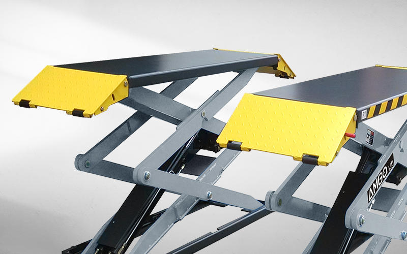 - Flexible drive-in ramps also function as extension platforms.;