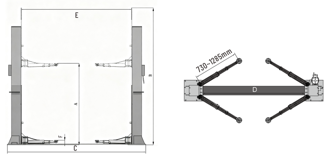 - The floor plate's open top design allows it to lift various vehicles in low ceiling garages;