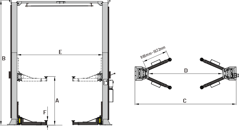 - Four 2-stage rugged arms offer ample stability to lift various heavy vehicles;