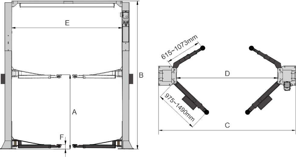 arms allow to load different vehicles in an asymmetric or symmetric configuration.