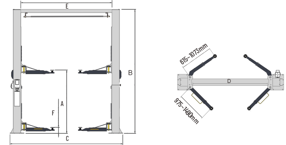 arms allow to load different vehicles in an asymmetric or symmetric configuration.